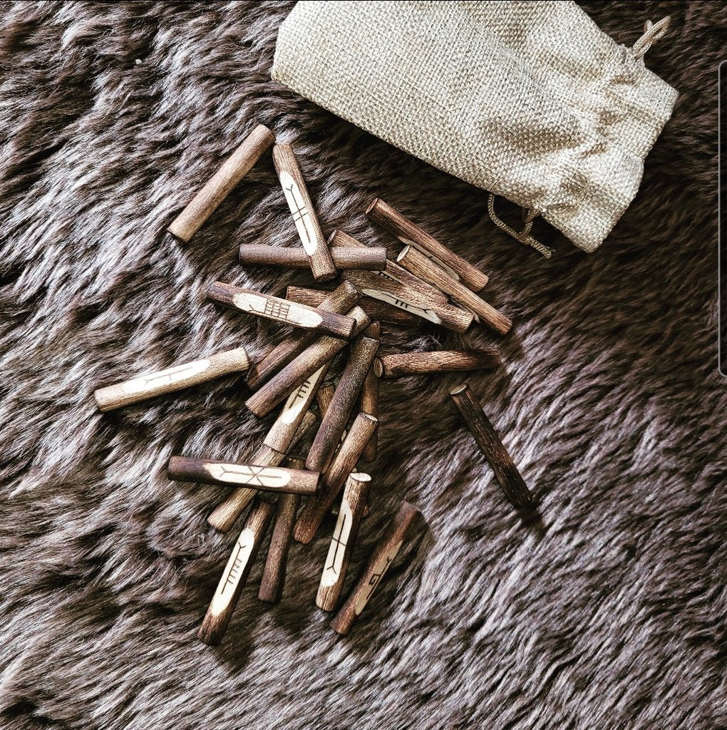 Each Rune is cut, sanded and burned by hand using a handheld pyrography tool