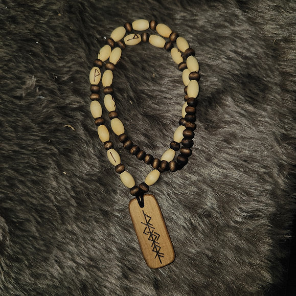 Handcrafted from start to finish - These stunning and powerful Runic Meditation Necklaces feature the Elder Futhark Runes hand burned into small wooden beads which are stained in our handmade Black Walnut Ink.